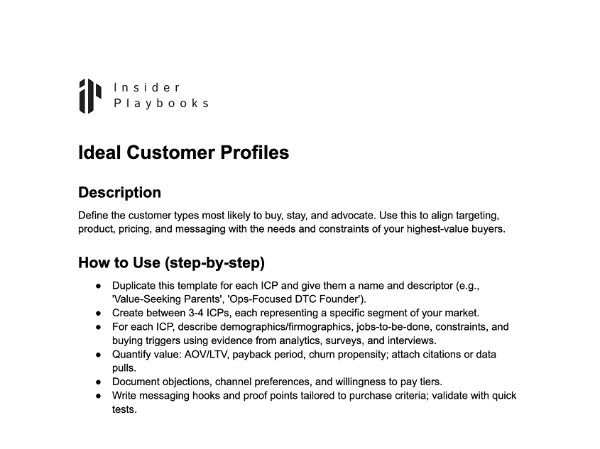 Define the customer types most likely to buy, stay, and advocate. Use this to align targeting, product, pricing, and messaging with the needs and constraints of your highest-value buyers.
